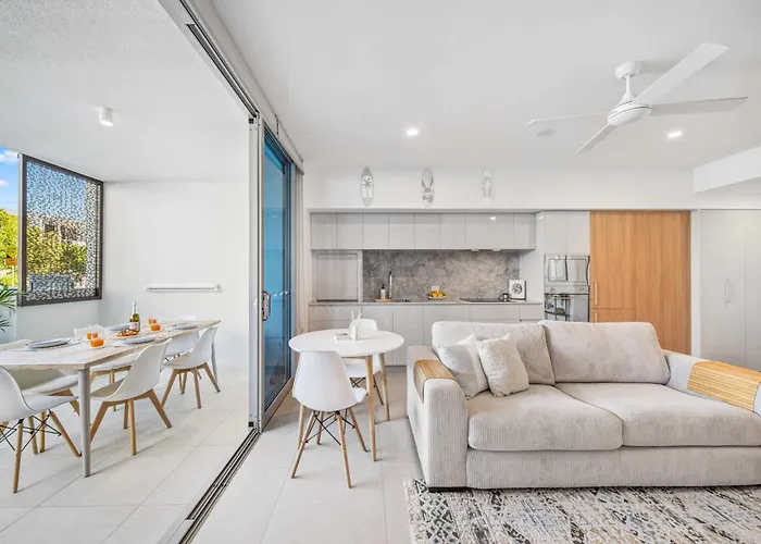 The 125 m² Azzure Haven - Resort-Style Living By Bokarina Beach is located in Bokarina, 7 km from The Wharf Mooloolaba, and pampers guests with a sauna. At the apartment, Wi-Fi and parking are also provided.